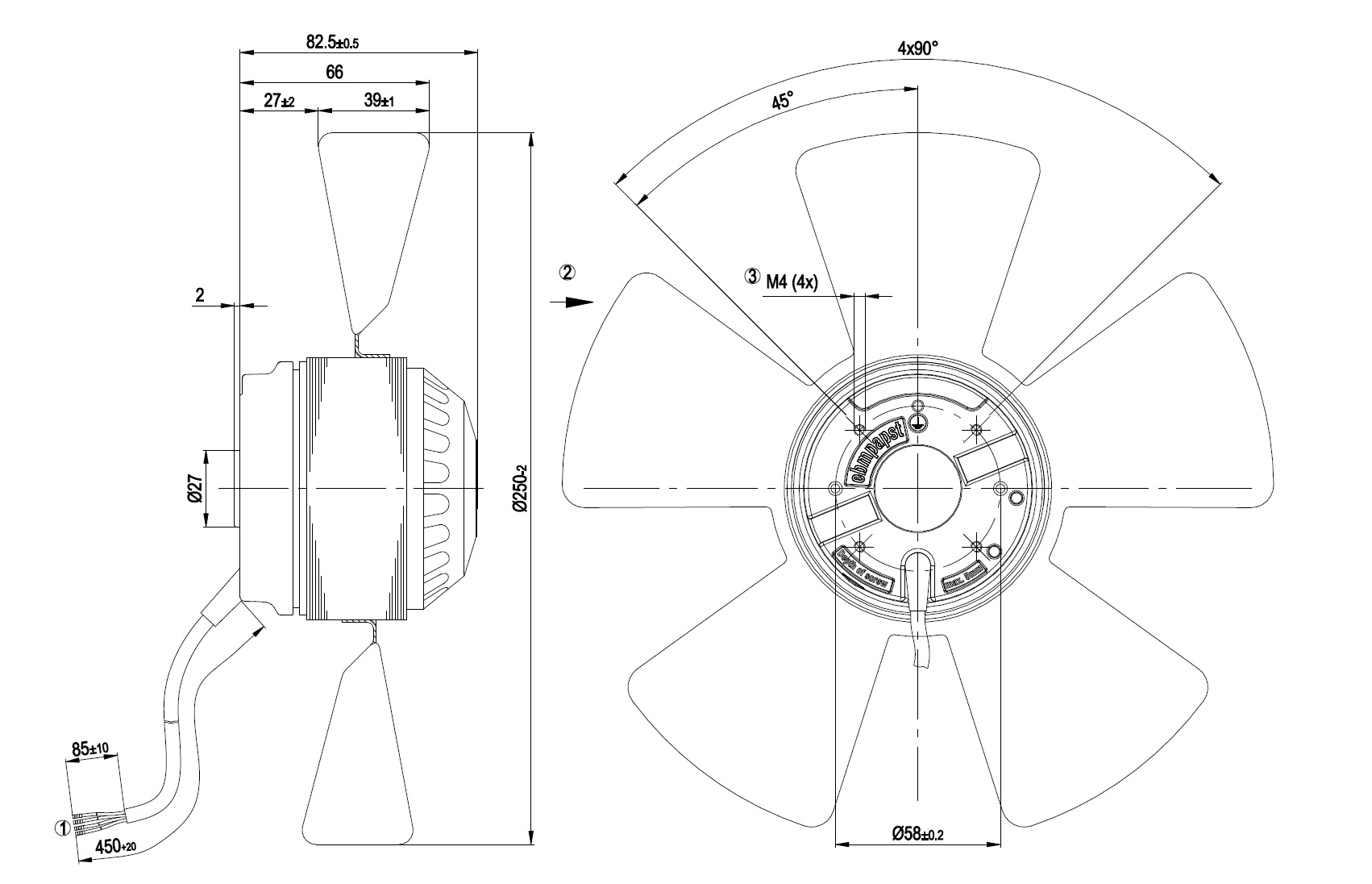 Замеры производительности соответствуют ISO 5801 категория А. Для детального уточнения способа замеров, Вам необходимо обратиться к специалистам ebm-papst. Уровень звукового давления со стороны всасывания: LwA по ISO 13347 / LpA с расстоянием 1м от оси вентилятора. Данные действительны только при указанных условиях измерения и могут варьироваться в зависимости от условий установки. При отклонении от стандартной конфигурации, необходимо проверить все значения в собранной установке.