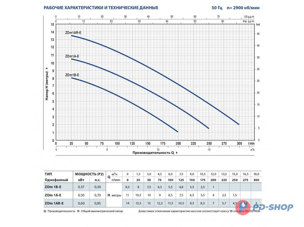 - Подача насоса до 300 л/мин. (18 м3/ч)